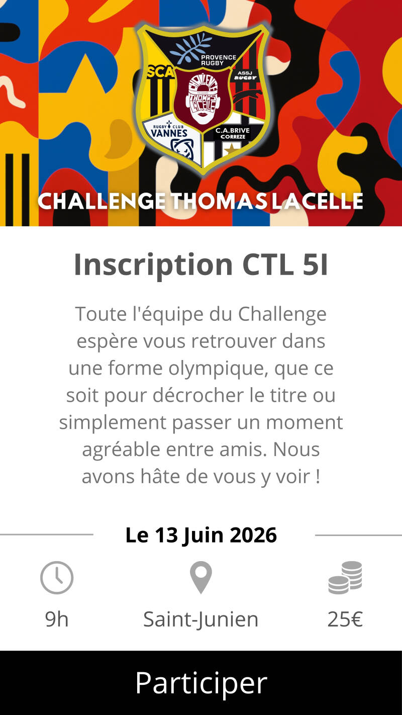 Pour valider l'organisation du Challenge, chaque équipe réservera sa participation par un acompte (25€). Elle s'acquittera de sa participation complète le jour J (25€). Soit un coût total de 50€ par équipe.